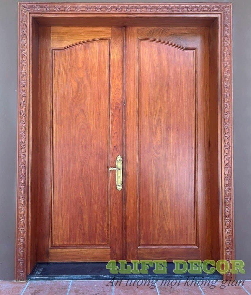 Cửa 2 cánh cho gia đình với thiết kế cầu kỳ cùng các họa tiết chạm trỗ tinh tế, đẳng cấp giúp cho cửa chính của ngôi nhà trở nên nổi bật, gam màu gỗ tự nhiên sang trọng