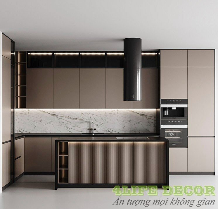 – Kính ốp bếp: kính cường lực sơn màu tự chọn hoặc có thể lựa chọn gạch ốp bếp, ốp đá