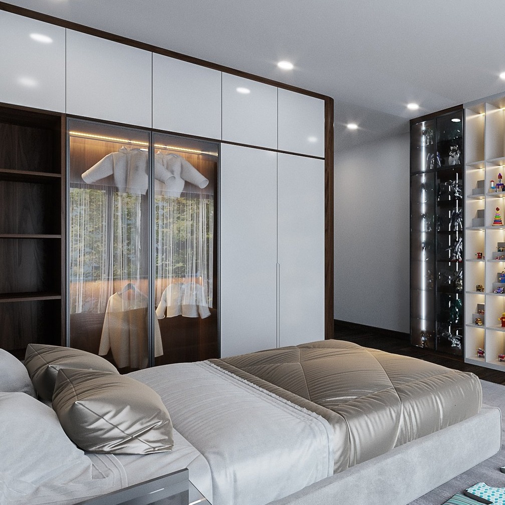 Tủ quần áo gỗ cánh phủ acrylic WD051 với thiết kế nhỏ gọn, tinh tế nâng tầm sang trọng cho căn phòng